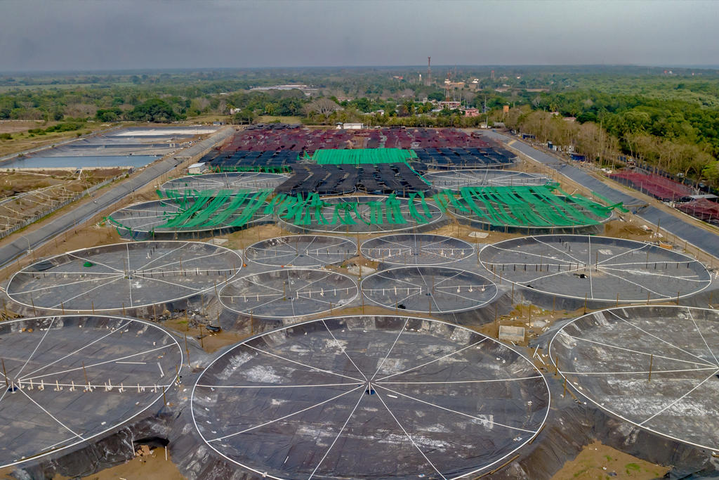 in our operations. Our bio secure ponds are built on three pillars: clean saltwater from well points, clean pathogen-free animals, and